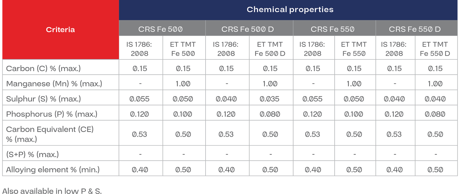 Copper, chromium & phosphorous vanadium additives enhance corrosion resistance.